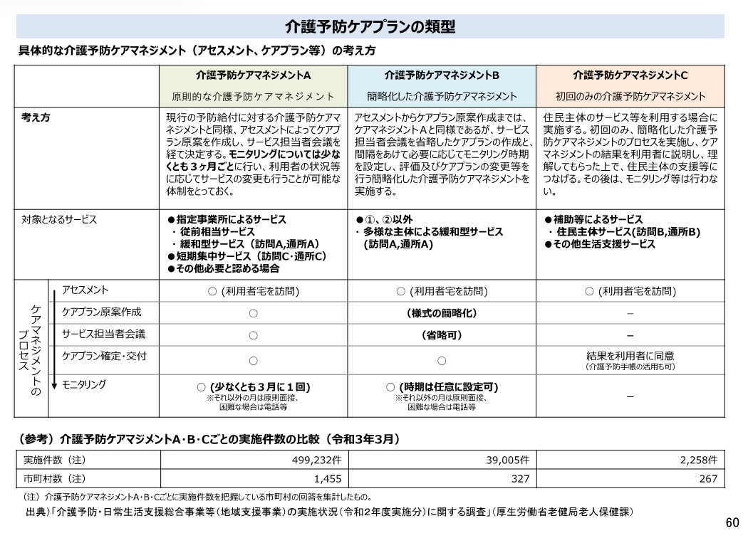 地域包括支援センターの役割を分析した時、令和3年度からスタートした重層的支援体制整備事業による8050問題の相談窓口など、総合相談支援機能に特に力を入れるべきとされた。そうした時に、地域包括支援センターの業務の中で大きな負担になっているのが予防ケアプランである。現在において、予防ケアプランは多くの場合、地域包括で受注して地域の居宅介護支援事業所に外部委託しているのが現状だ。今回、介護予防ケアプランの許認可を居宅介護支援事業所に指定を拡大される。居宅介護支援事業所が、直接に予防ケアプランを受注できるのだ。また、予防ケアマネジメントAについては、利用者の状態が大きな変化がない場合に限って簡素化を可能とするということで負担を軽減するという方向が出されている。ただ、実際の手続や、すでに地域包括支援センターが契約している既存の予防ケアプランをどうするかなどの実務的な問題は、今後の通知やQ&Aを待つことになる。