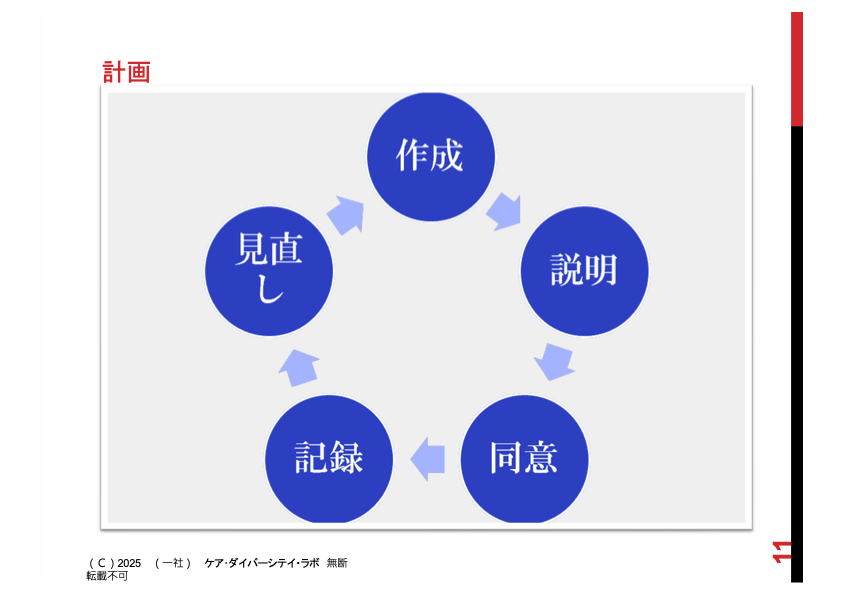 サービスは「計画に基づいて提供する」のが原則であり、その計画は「本プラン」である必要がある。計画は、作成した段階では単なる「原案」であり、利用者様に説明し同意を得た時点で初めて「本プラン」となる。