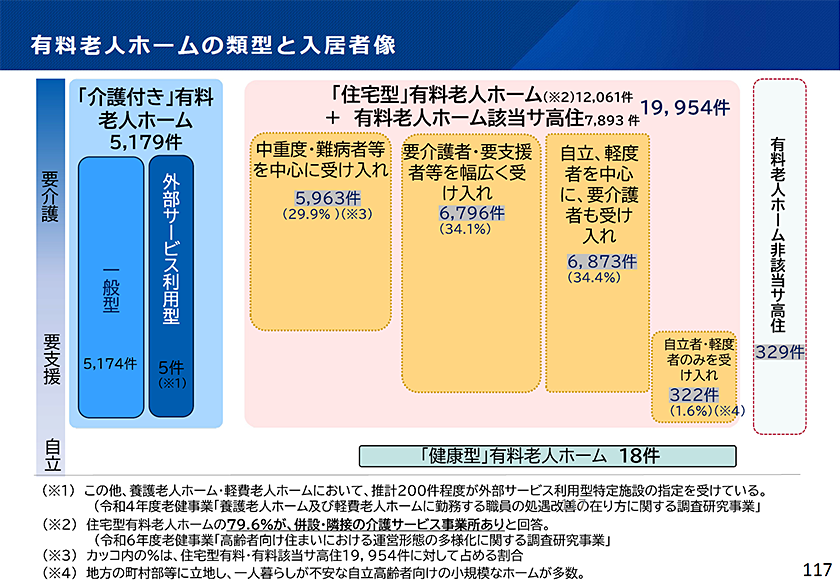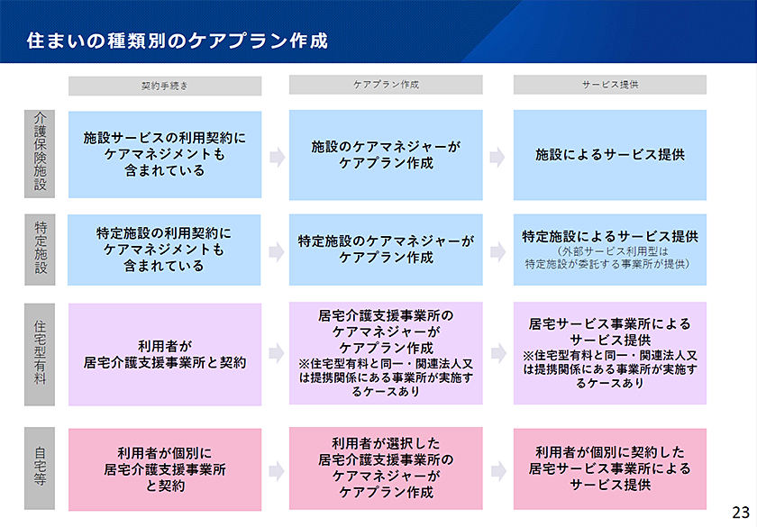 特に重要なのは、住宅型有料老人ホームにおけるケアマネジメントの給付の在り方に関する議論である。住宅型有料老人ホームは、外部サービスを利用する「在宅」の枠組みでありながら、実質的な機能が介護付きホームなどの施設サービスと同様になっており、「囲い込み」問題の温床ともなっている。このため、在宅とは性格が異なる有料老人ホーム等のケアマネジメントについて、利用者負担を求めるという論点が出された。これは、「住宅型」ホームのビジネスモデルが、住まい部分の利益を最小に見込み、介護サービス部分の利益を最大に見込む構造にあるという指摘と表裏一体であり、ケアマネジメントの中立性確保と密接に関わる問題である。