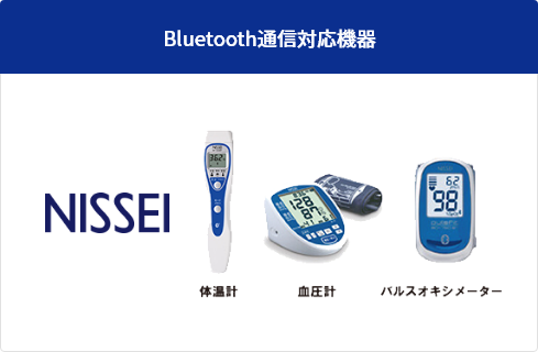 ※電子体温計、電子血圧計、パルスオキシメーターと連携が可能です。連携対応機器は弊社までお問い合わせください。