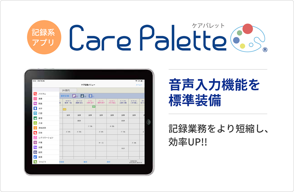 専門性の高い各種用語を標準搭載しているため、話した言葉がそのまま文字化されます。学習機能を搭載 しているため、使えば使うほど精度が上がり、記録業務を削減します。