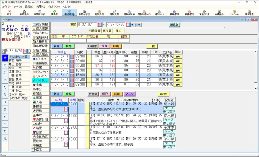 バイタルや服薬などの登録データを収集し、ケース記録を作成。電子押印が可能で、 管理者が印鑑を押すと追加入力不可となるロック機能も装備しています。