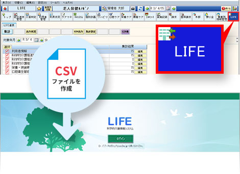 LIFE加算はもちろん、LIFEへの提出データの出力と帳票印刷が可能です。